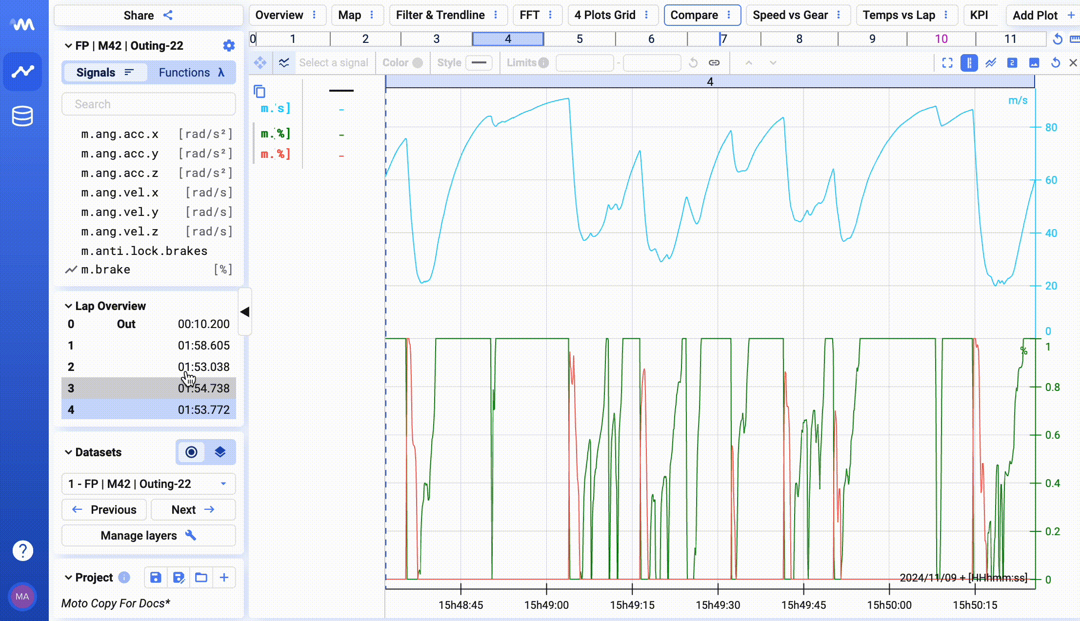 If you have data that is organised by different laps (see [motorsport-package](https://docs.marpledata.com/docs/marple-insight/user-manuals/motorsport-package "mention")), you can also compare laps within the same dataset. To do so, simply use Ctrl + click and selecting multiple laps.