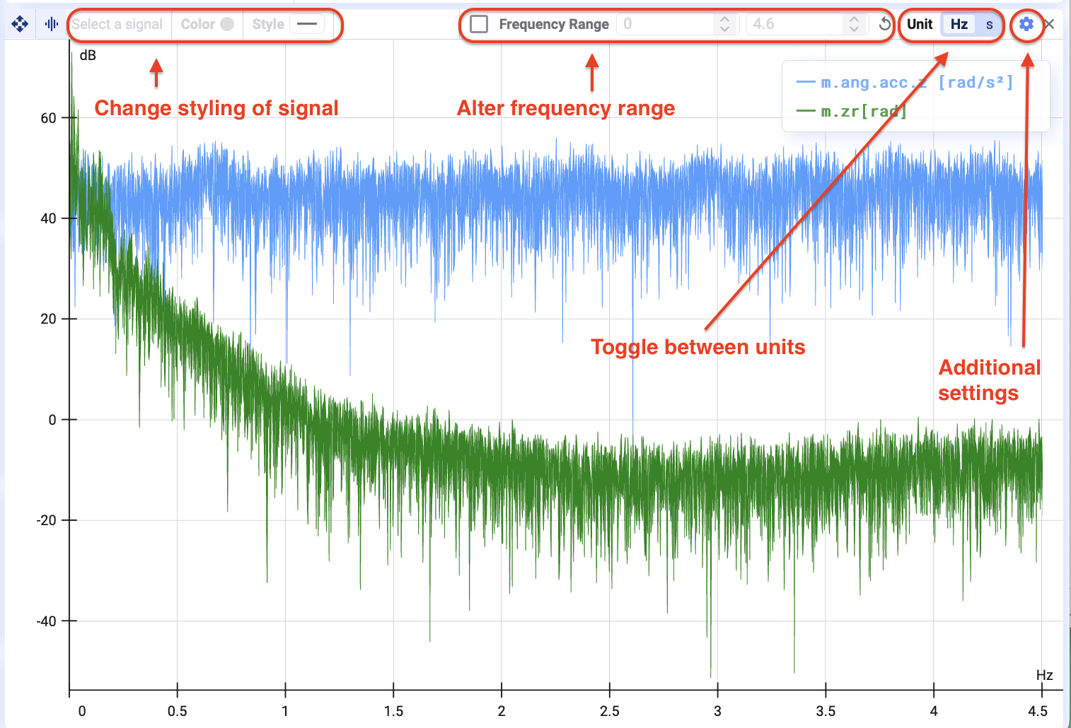 Turn this setting on to show the plot as a power spectral density plot. This can be  useful for analyzing random or noisy signals where energy is spread out over many frequencies.
