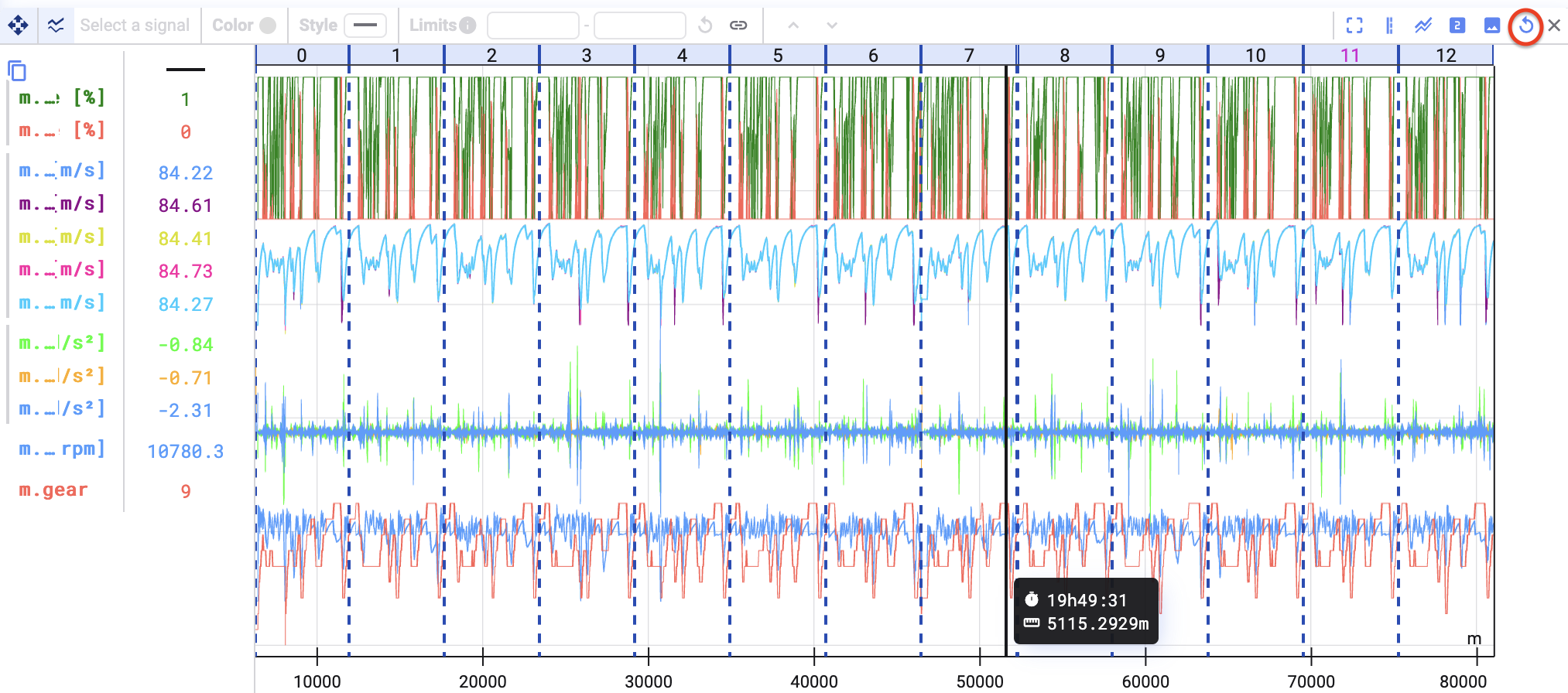 You will see that the time series values on the x-axis adapt and possibly even change unit. Lost in time after zooming? In the bottom right of the time series plot, you will also always see the context of the unit.