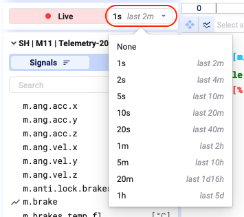 By default the refresh rate is set at 1s. To change the refresh rate, simply click on the dropdown button next to the Live banner, and set the desired refresh rate.