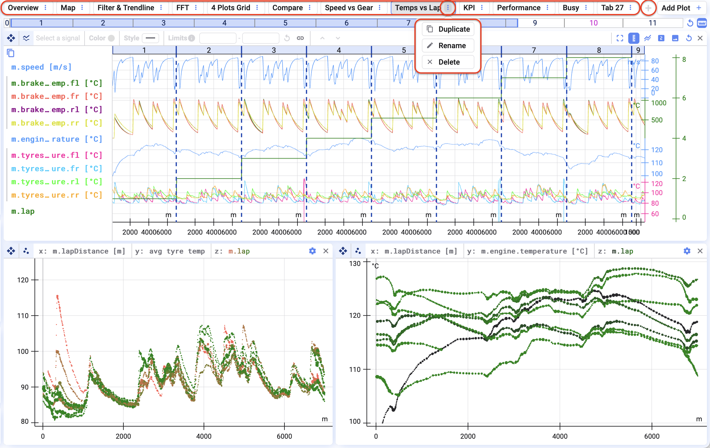 Visualisations are organised in tabs. Good names make it very easy to find back the data.